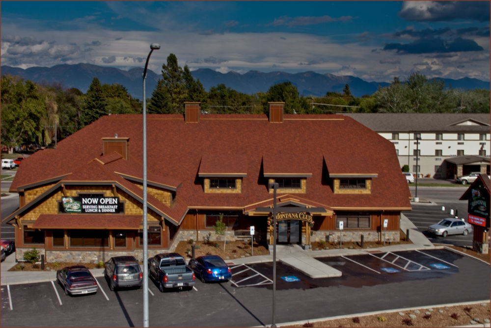 The new Montana Club on Highway 93 South was the third of three new Montana Club Restaurants to be built. Designed to reflect a Glacier National Park Lodge, the 9,140 s.f. building, with its vaulted ceilings, wood beams, wood finishes and stine fireplace creates a Montana atmosphere for some good home cooked meals.